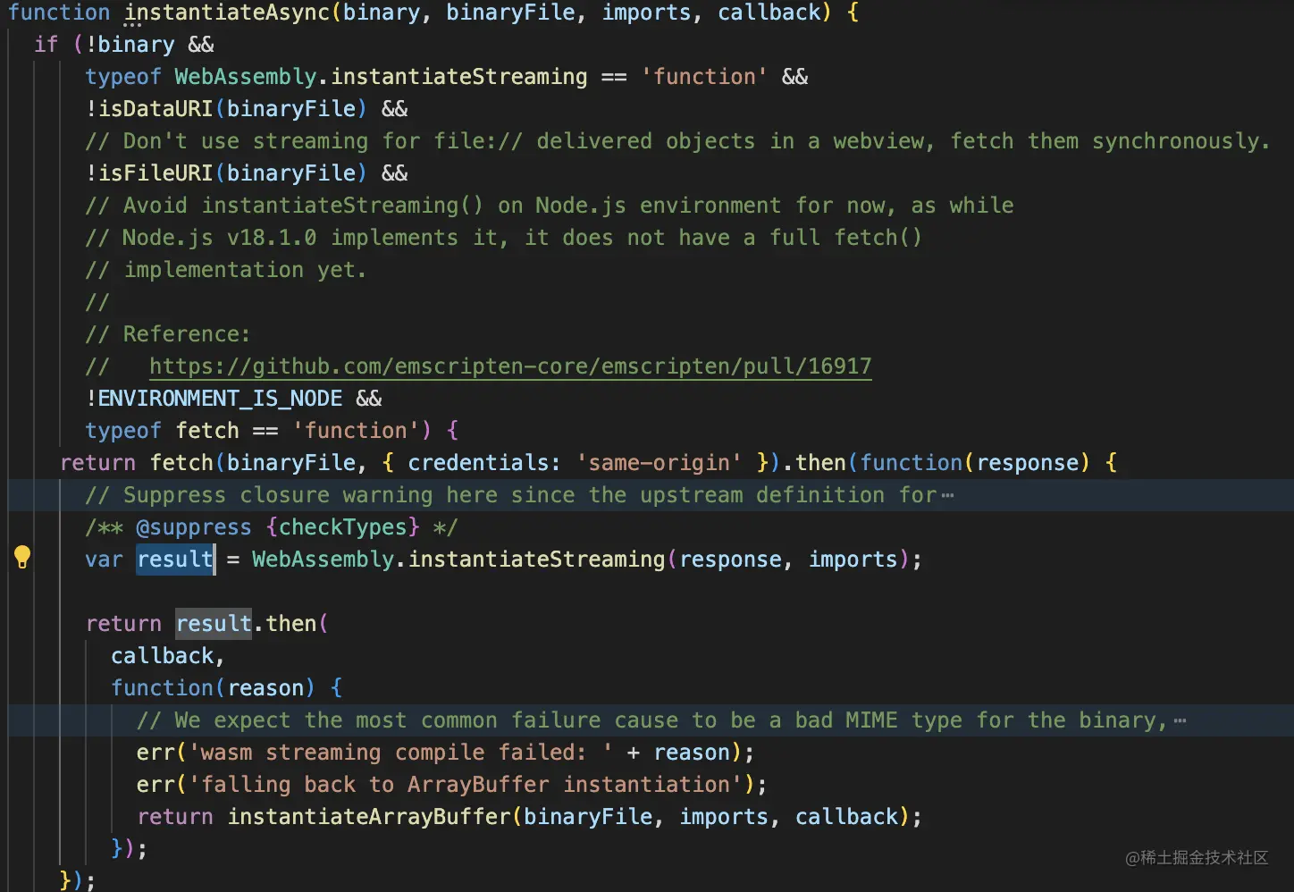 WebAssembly为编译目标时,由于WebAssembly的实例化方法本身是异步指令,因为认为模块是异步加载的