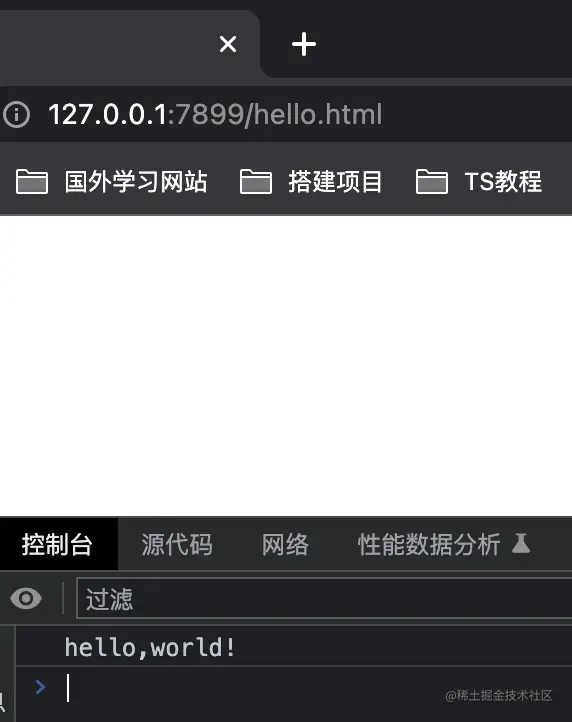 在http://127.0.0.1:7899/hello.html的控制台,就能看到hello,world的输出结果。