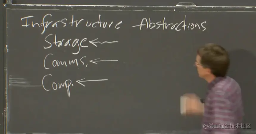 我们会讨论包含所有这三个部分的基础设施,但实际上我们最关注的是存储,因为这是一个定义明确且有用的抽象概念,并且通常比较直观。人们知道如何构建和使用储存系统,知道如何去构建一种多副本,容错的,高性能分布式存储实现。