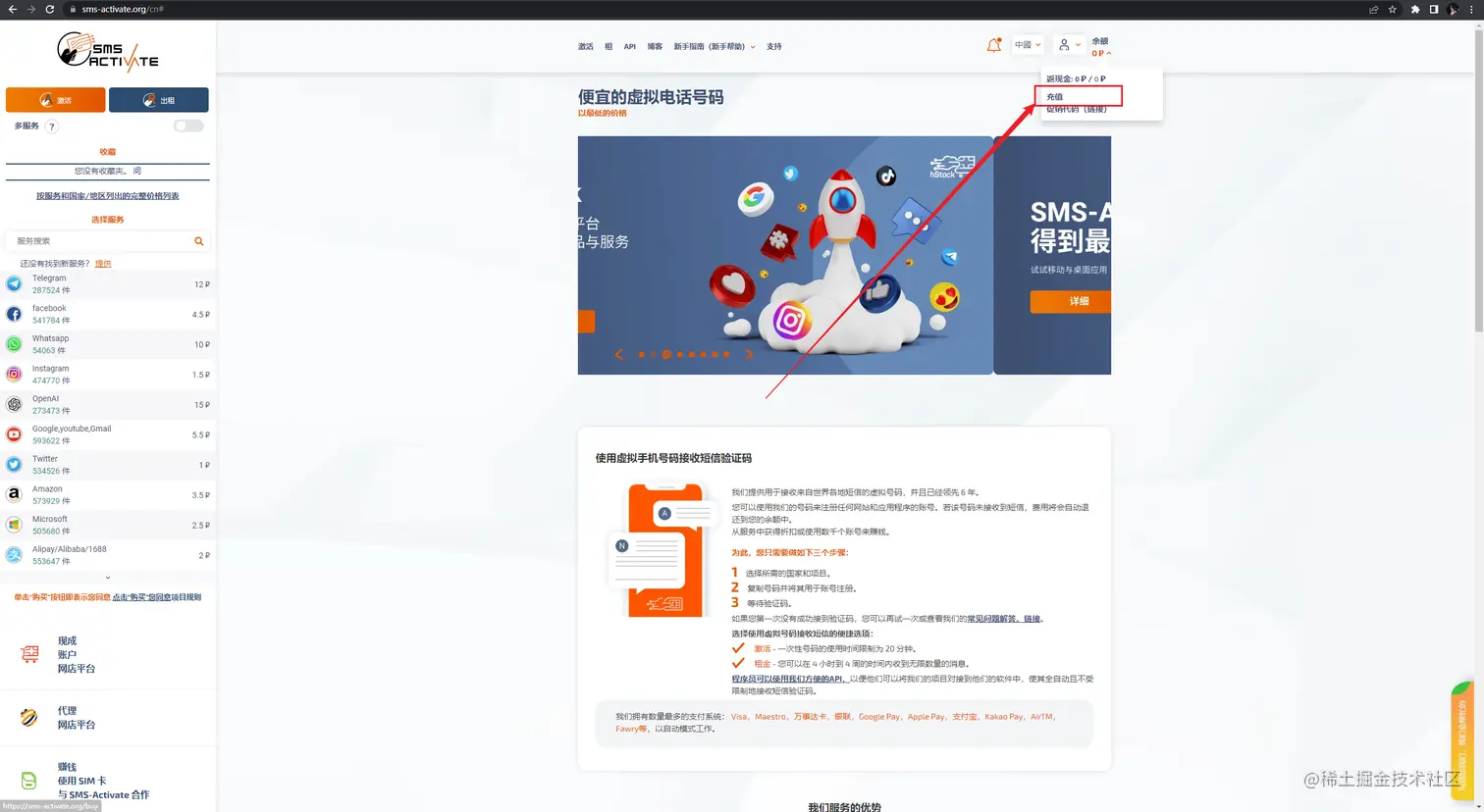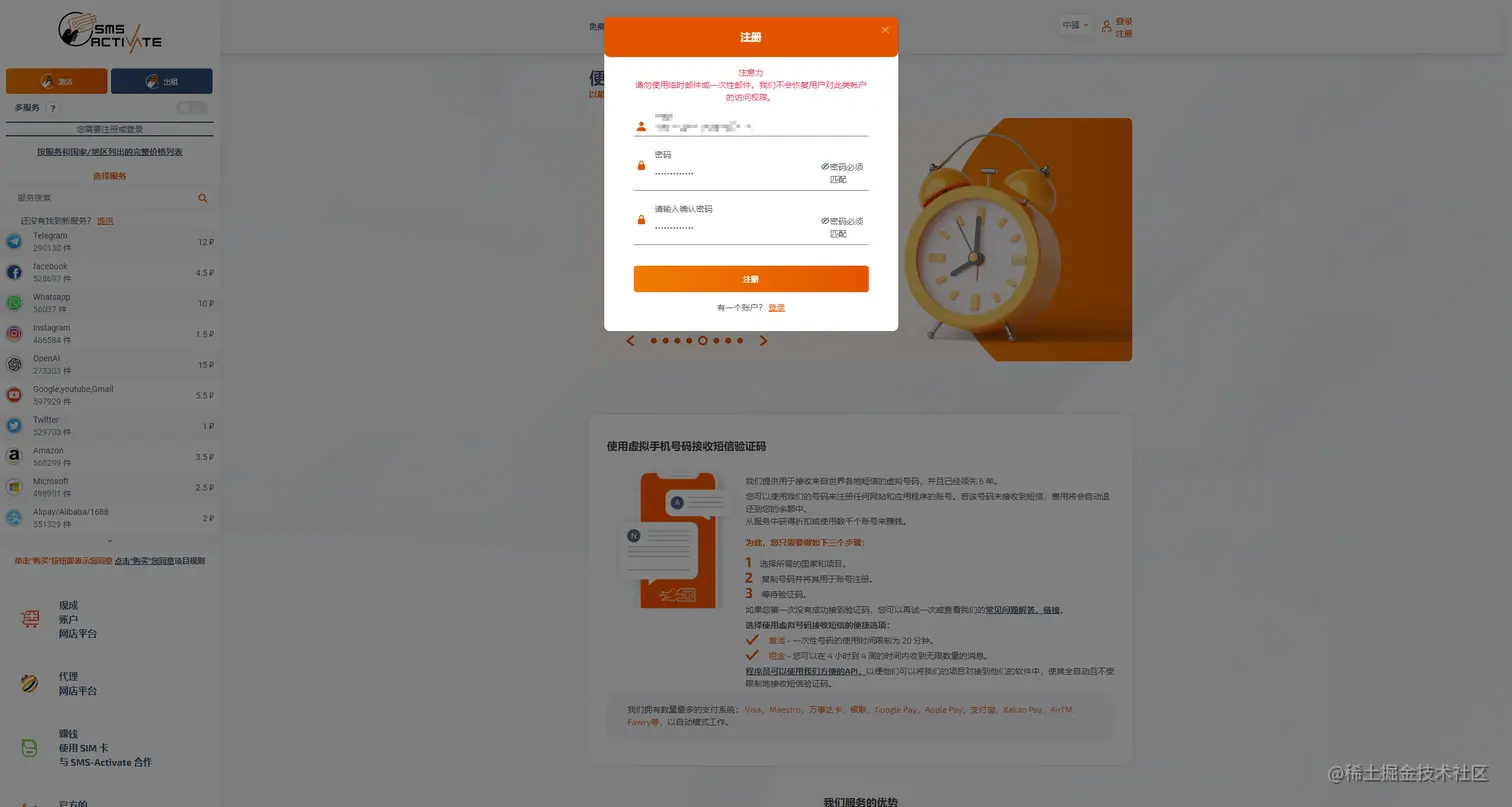 - 官网地址:sms-activate.org/cn