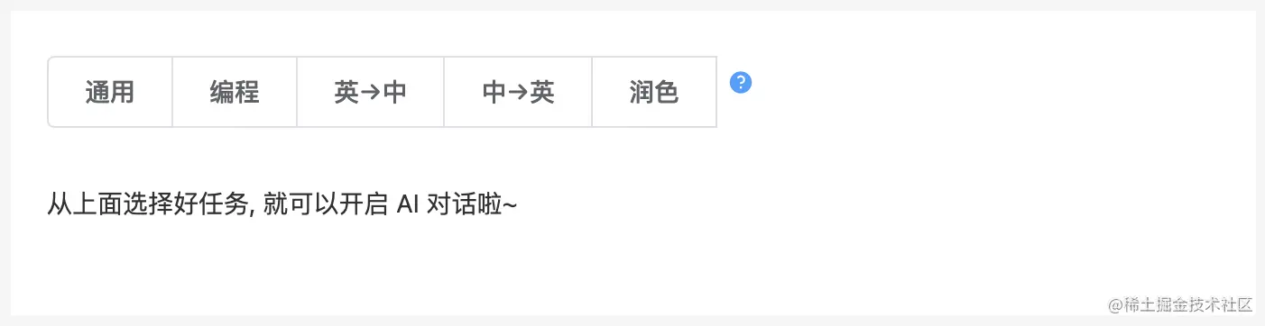 - 除了猎奇以外, 我们日常生活和工作中, 常用的就那些功能, 可以多看看网络上的教程, 并在线下多做几轮测试比较, 然后内置到工具中. 如下图所示, 已有通用、编程、翻译、润色了, 后面会持续增加.