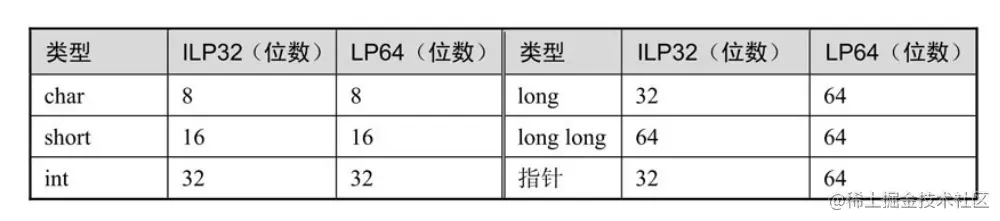 ILP32这个缩写的意思是int(I)、long(L)和指针(P)类型都占32位。