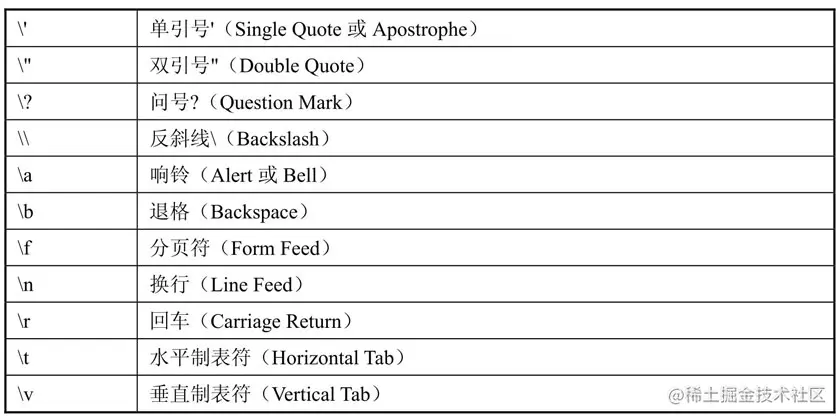C语言规定了几个控制字符,不能用键盘直接输入,因此采用\加字母的转义序列表示。