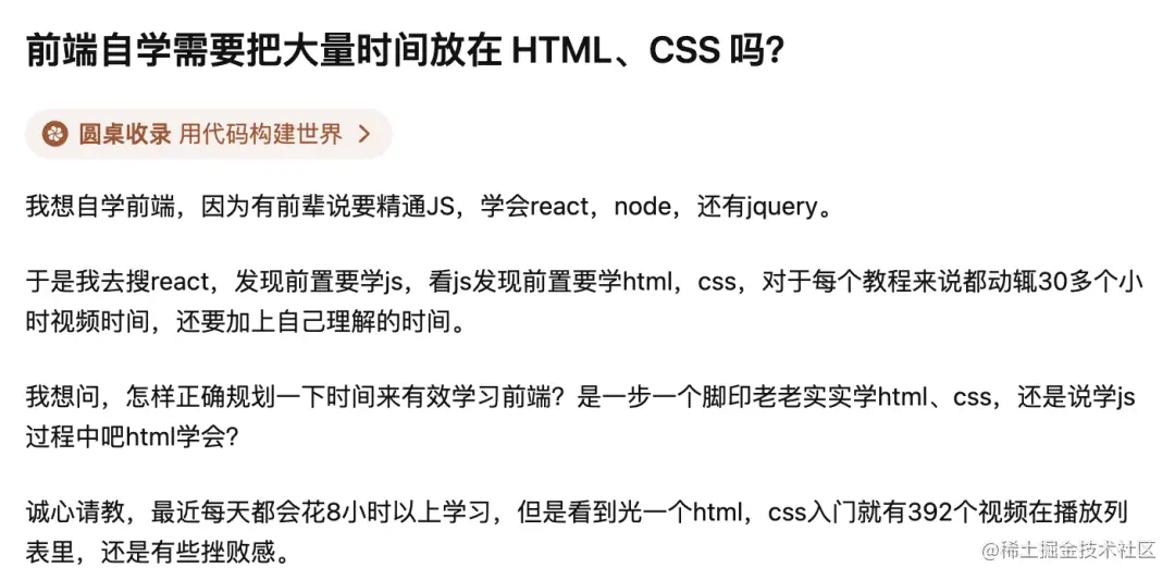 这位新手的困惑极具普遍性,多数人在面对前端纷繁复杂的技能树的时候,很容易随便找一个单点,陷进去拔不出来,然后产生无尽的挫败感。
