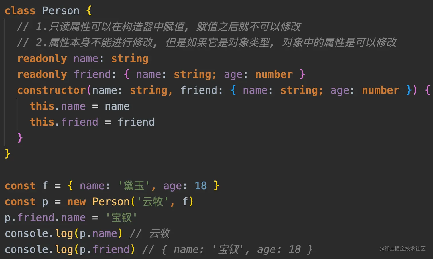- 如果一个值不希望外界随意修改,可以使用 readonly 变得只读