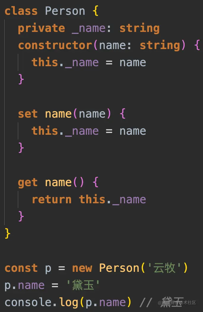 - 之前有一些私有属性我们不能直接访问,我们就可以使用存取器监听他的获取(getter)和设置(setter)