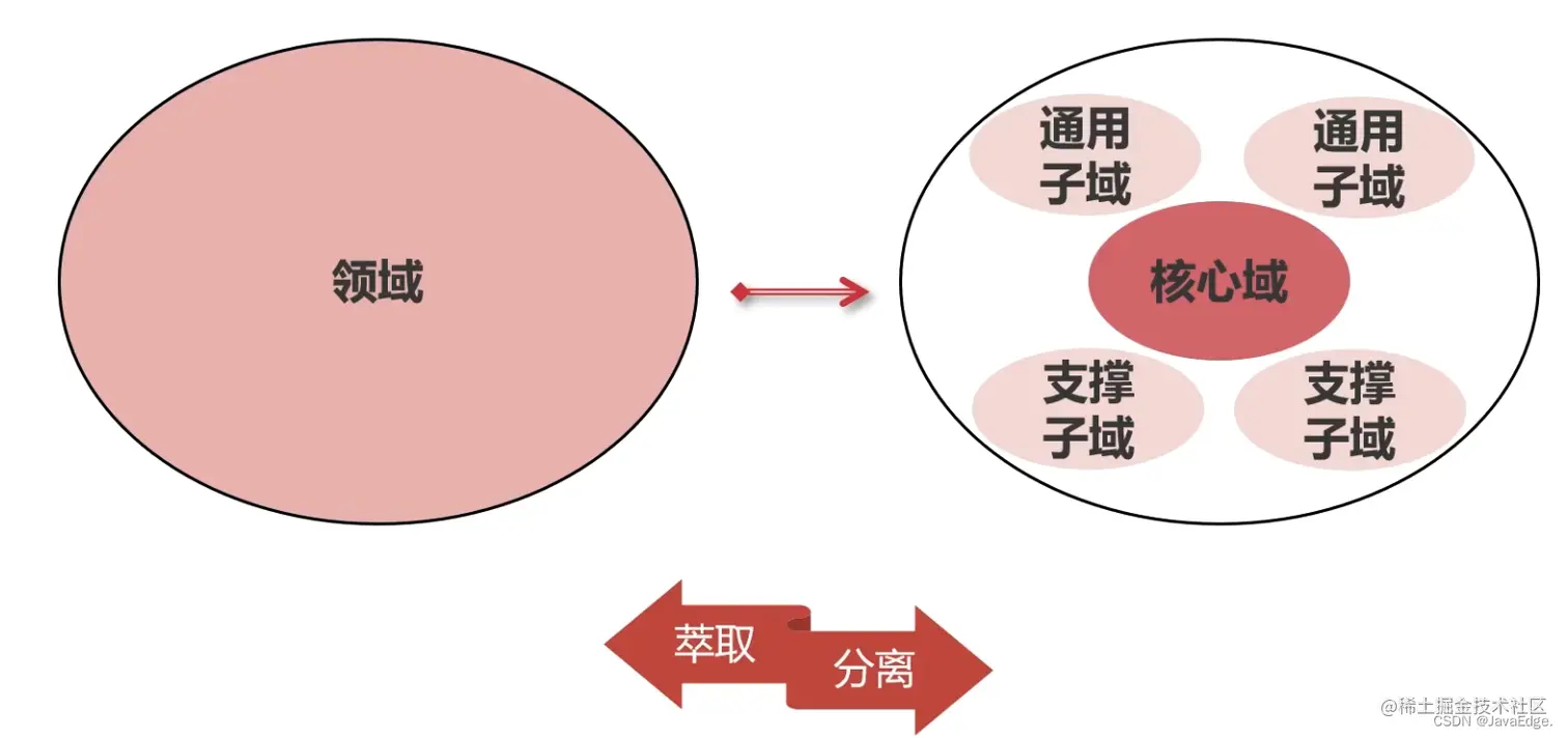 领域可再划分为多个子领域,即子域。 每个子域对应一个更小的问题域或业务范围。