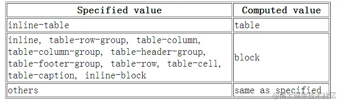 - 否则,如果元素是根元素,display根据下表进行调整