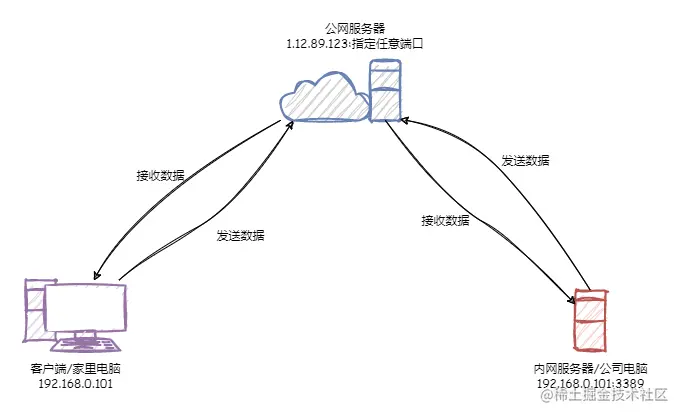 简单来说,就是让处于局域网内网的服务,能够让公网访问到。在公司环境,一般都是整个公司的网络可能分配到公网IP,但内网用的都是局域网IP,经过一层NAT转换的;又或者家用宽带,一般都是整个大内网,并不会有公网IP,所以想要让内网的服务能够提供给外网访问,则需要用到内网穿透。