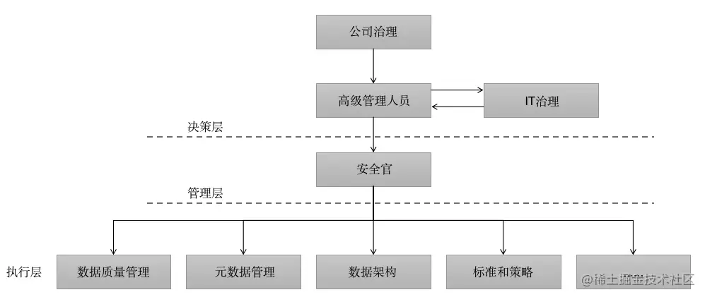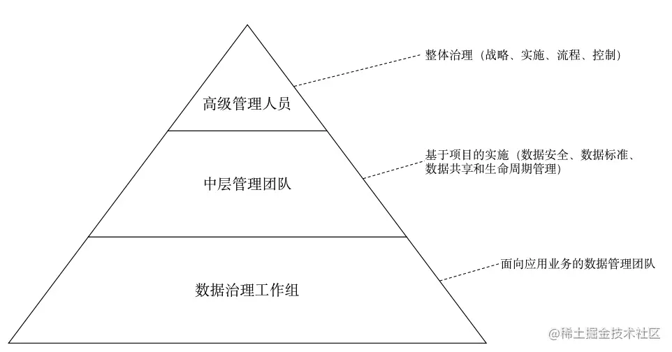 这一部分将研究管理架构。它主要包括三个相应的组,可以分为三级管理模型:一组高级管理人员,一个中层管理团队和一个数据治理工作组: