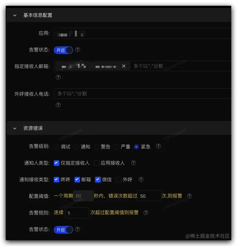 自定义告警是监控业务指标的最佳手段,页面提交失败,函数进入catch逻辑,等都可以通过自定义监控进行告警设置。