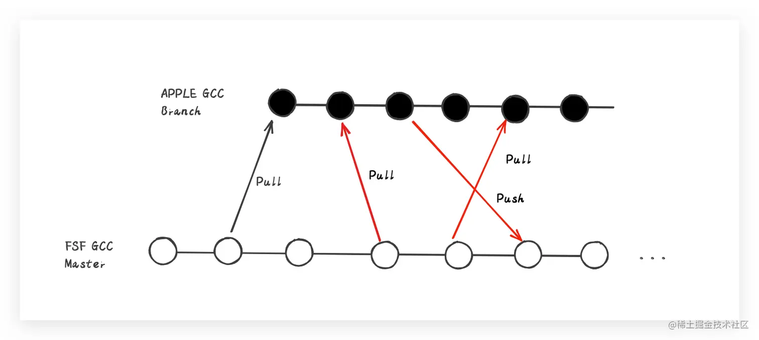 随着OC语言的不断迭代发展,语言特性也就愈来愈多,那编译器的新特性能力支持当然也得跟得上啊?但是C也在不断的迭代发展,GCC编译器的主干功能当然也越来越多,OMG!单独维护的OC编译器版本对GCC主干的新功能并没有很好的同步,关键在合并功能的时候不可避免的出现种种冲突。为此,Apple曾多次申请与GCC主干功能合并同步,GCC乍一看都是OC 特性feature,跟C有毛线关系?所以关于合并的优先级总是排到最低,Apple也是没有办法,结果只能是差异化的东西越来越多,编译器的维护成本也变得异常之高。