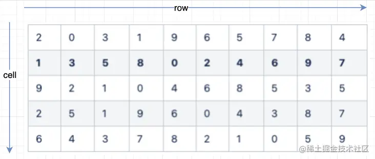 下图定义为加密后的值为5位示例,即每天生成的唯一二维矩阵行数定义为5,列数配置为10,共5组slat,每组都是0~9随机生成的数字。