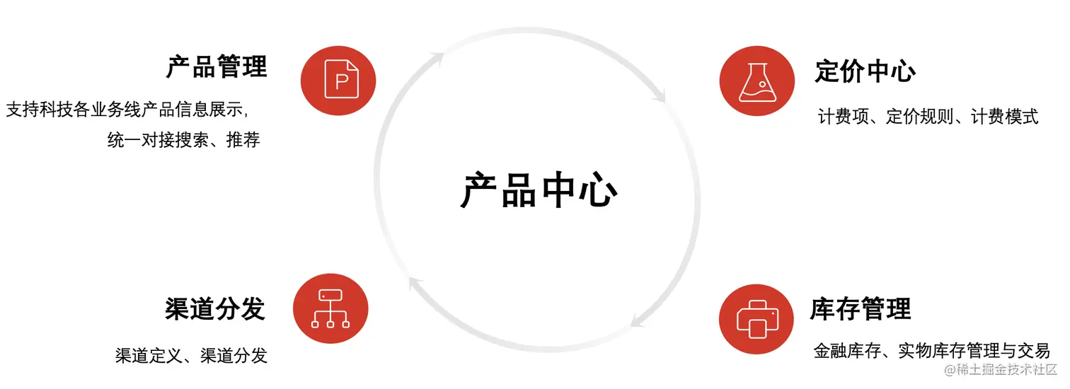 科技产品中心实现产品域科技集团的产品和类目覆盖及统一管理,解决产品交易及输出过程中渠道端、业务系统、财务整个交易链条的主数据一致性问题,