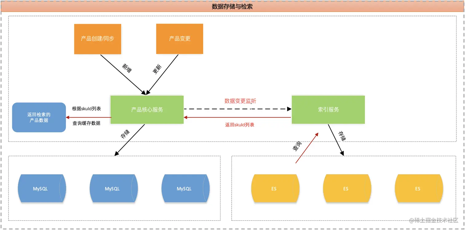我们提供索引微服务,监听产品核心服务的数据变更事件,同步更新ES存储,各业务线复杂的查询通过索引服务批量查询返回产品ID列表,根据产品ID列表读取R2M缓存数据给各业务方,实现原理如下图。