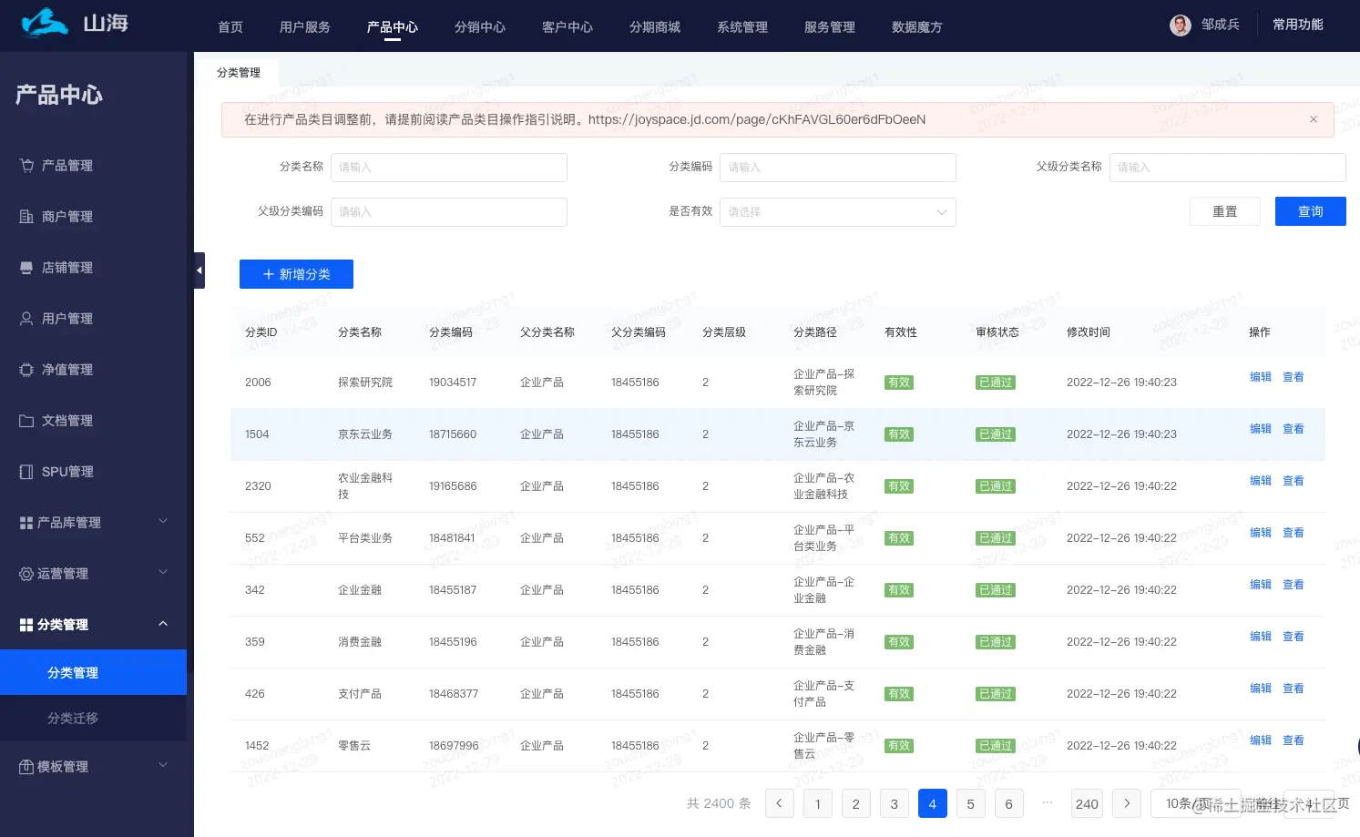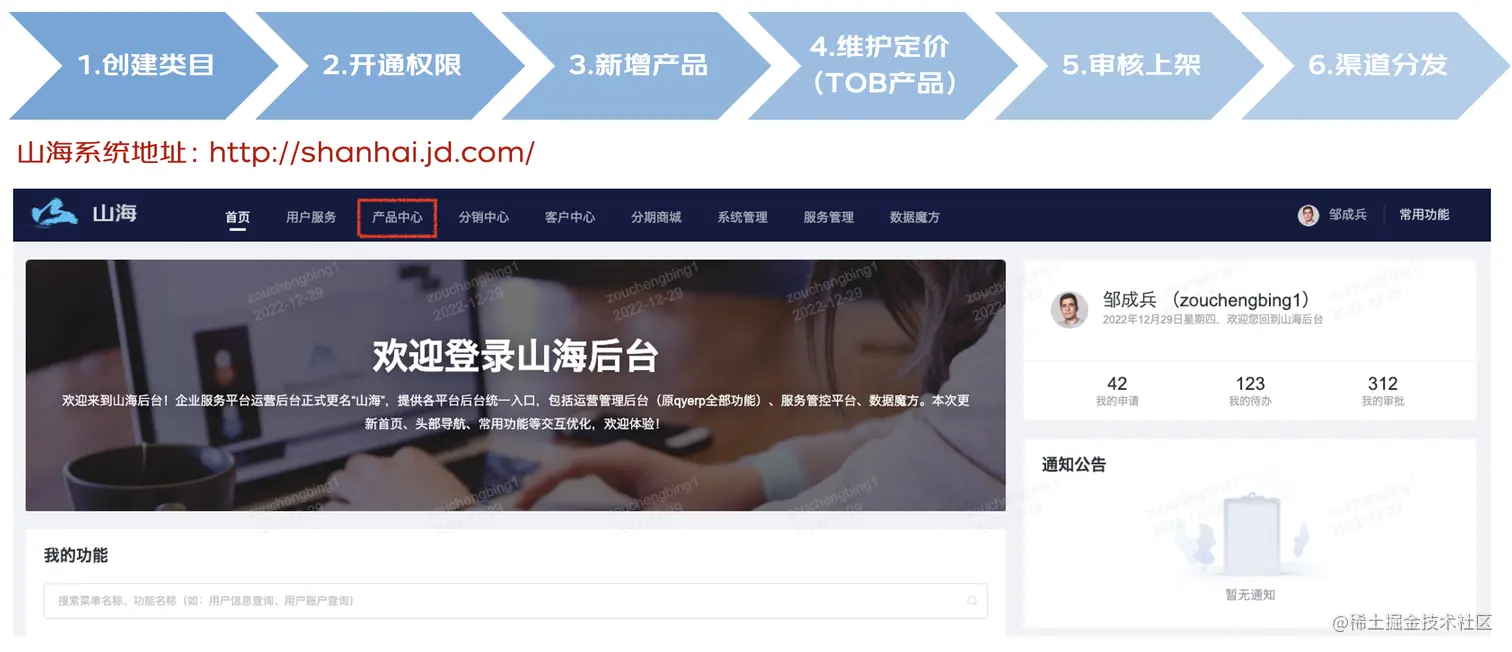 战略部和财务部确认后,由山海产品运营平台产研配置,并且开通类目权限。之后各业务线可登录山海运营管理平台,创建产品(TOB产品可维护定价信息),产品上架提交审批,指定分发的渠道可进行售卖。