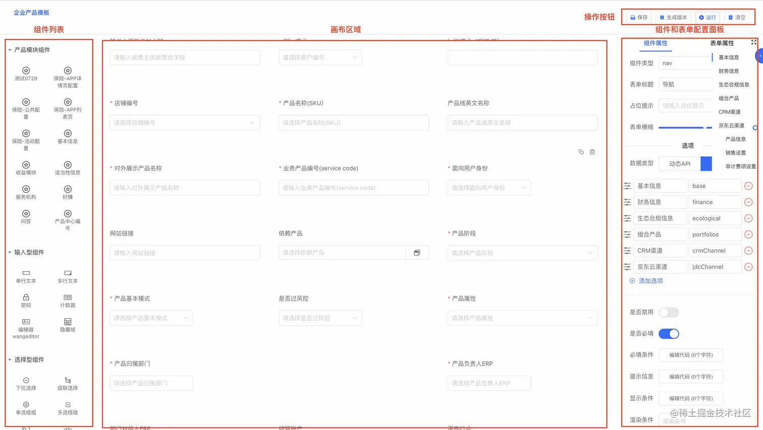 前端产品模版布局,采用JoyPage可视化搭建平台来实现可拖拽的页面配置,可以拖拽式轻松配置业务表单,像玩“乐高”一样自由搭建产品信息模板。