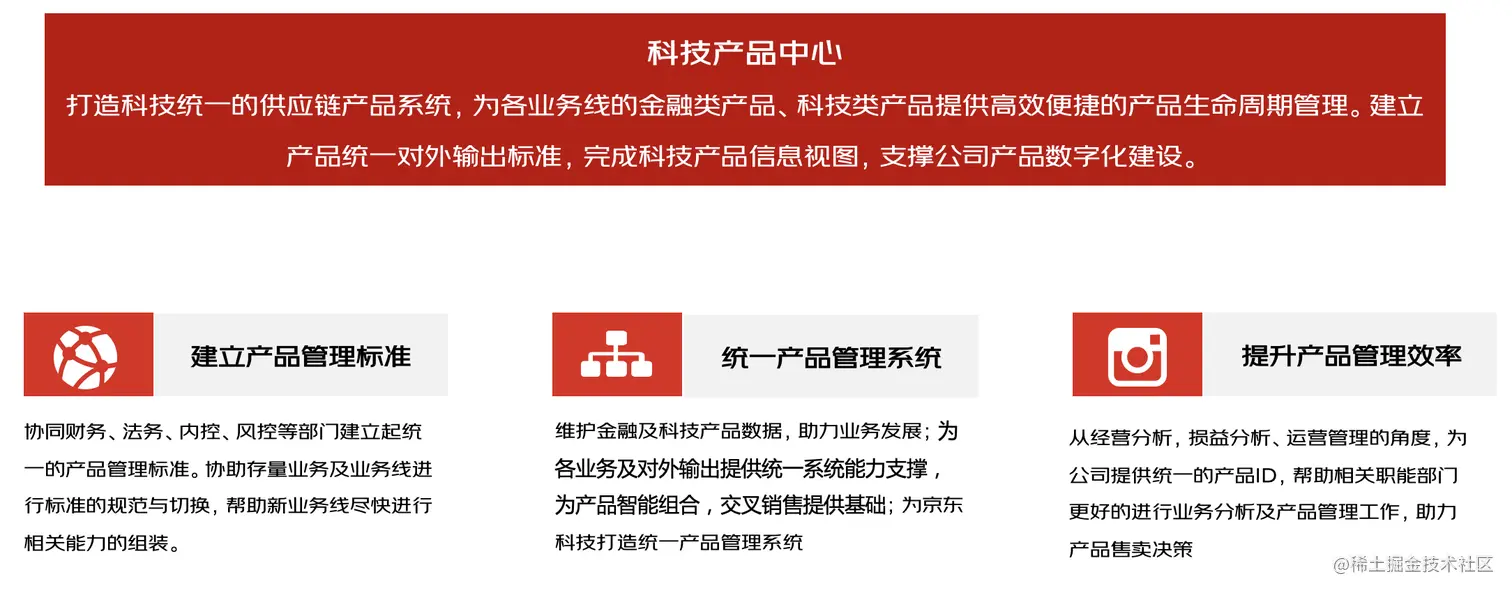 除金融类产品外,还包括京东云产品、保险产品、实物商品等,承接了科技产品委员会对TOB、TOC产品标准建设的全生命周期管理流程。