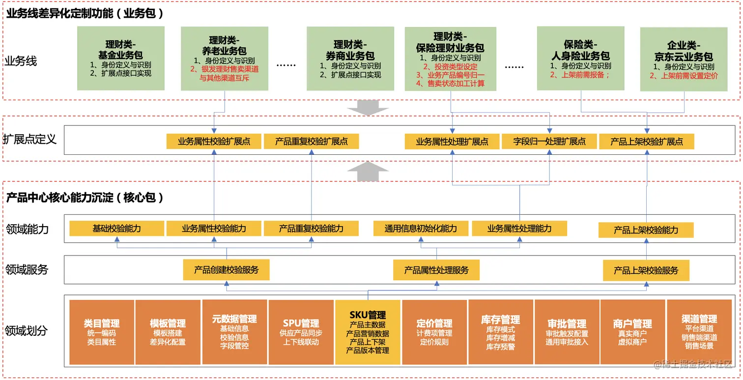 我们各业务线产品定义,管理流程差异化越来越大,为解决代码腐化,提高迭代效率,降低迭代成本,梳理出通用的的产品管理模型,沉淀平台核心能力,差异化功能抽象定义为各种扩展点,