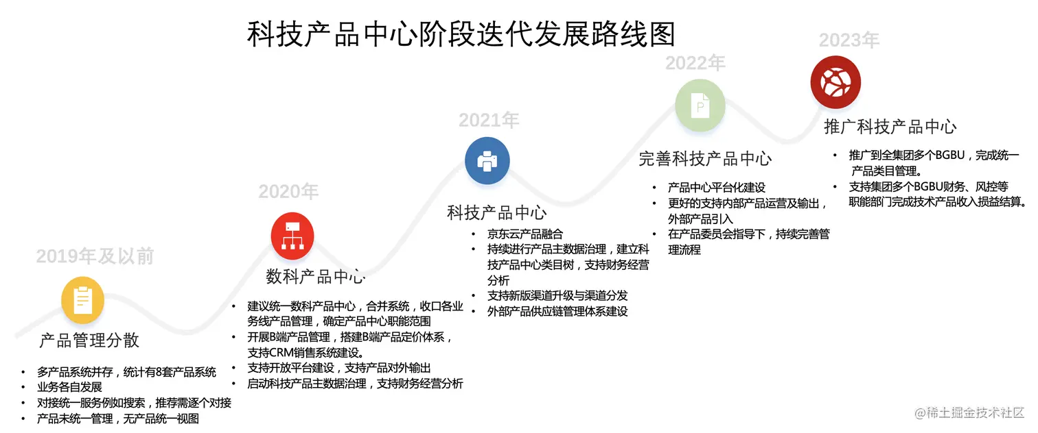 科技产品中心系统从2019年开始建设产品库,主要接收金融类产品,逐渐收口科技8套分散的产品管理系统,统一对接各业务线、财务、经分等,现阶段融合了科技各业务线的产品管理能力,