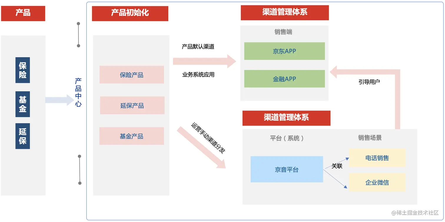 我们提供统一的产品信息服务,既支持业务开展,又可通过渠道分发的功能将产品信息分发至不同的渠道或者商家运营平台,本案例通过渠道分发功能分发到电销的京音平台,再由京音平台不同的销售场景引导用户转化。