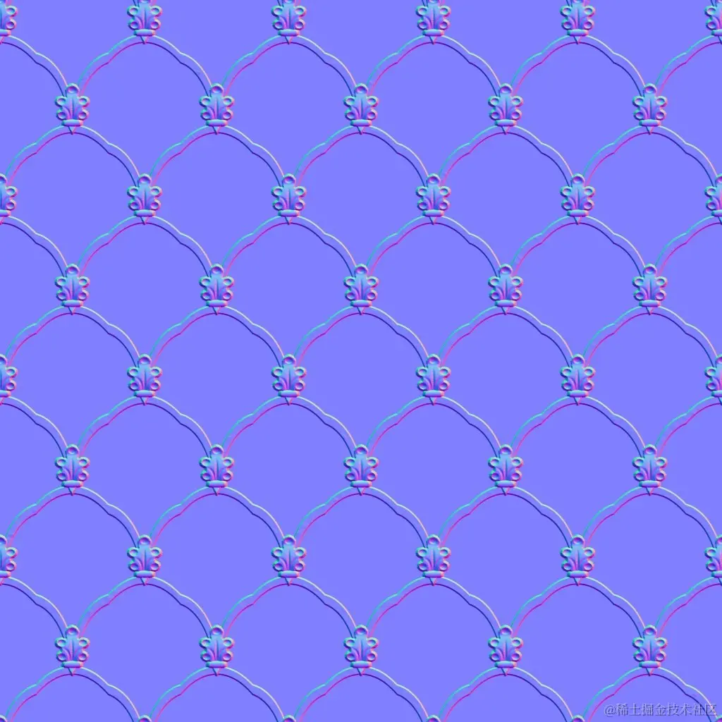 法线纹理(Normal Texture)是一种常用的纹理映射技术,用于在三维场景中模拟表面细节和几何体形状的变化。它通常是一个 RGB 颜色纹理,其中每个像素的颜色值编码了该像素对应的表面法线方向。