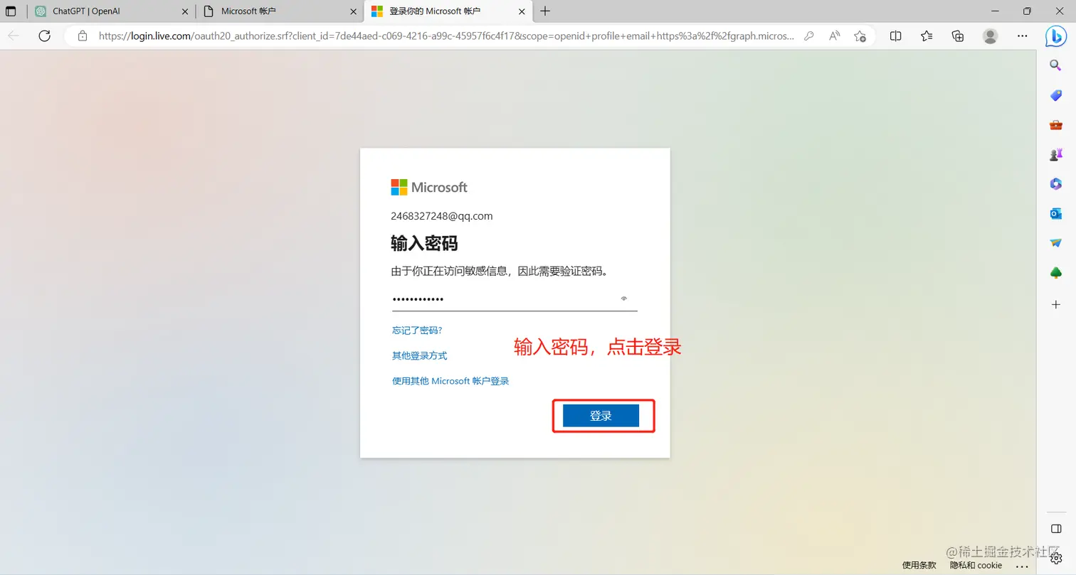 2、点击微软登录继续