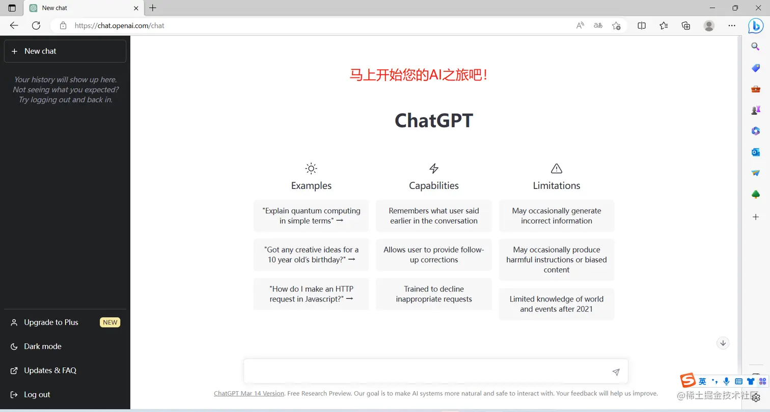 6、稍等片刻,您将可以体验到迄今为止人类最强大的AI--chatgpt