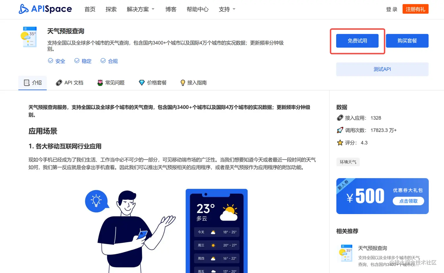 因为接入官方的 API 需要申请海外的账号、海外的信用卡,而这一切都需要有魔法才可以进行,所以我搜罗了国内各大接口平台,终于让我发现了一个宝藏:APISpace !!!
