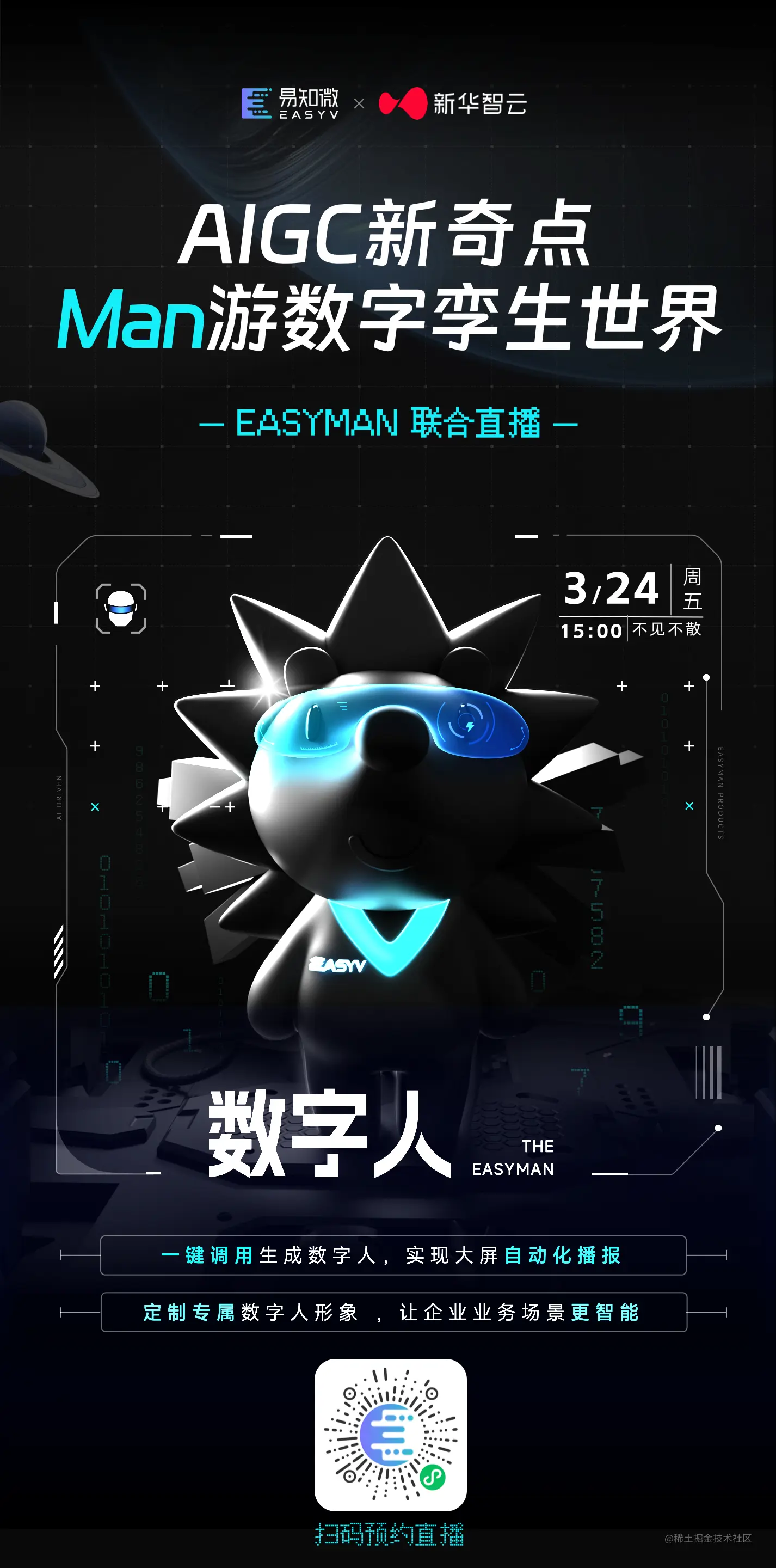 我们邀请到了**「新华智云」**与我们共同探讨AIGC数字人在数字孪生世界的深度应用,共同解答AIGC数字人的应用空间与价值...