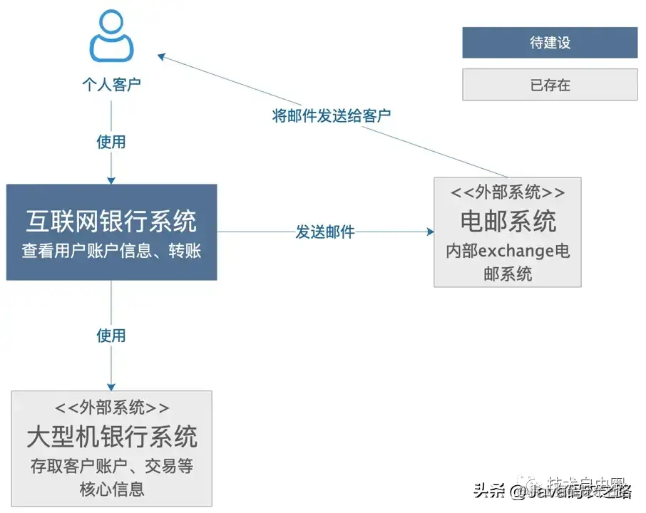 系统依赖分析(System Context Diagram)用于描述要我们要构建的系统是什么,子系统直接的依赖关系是什么,用户是谁,需要如何融入已有的IT环境。