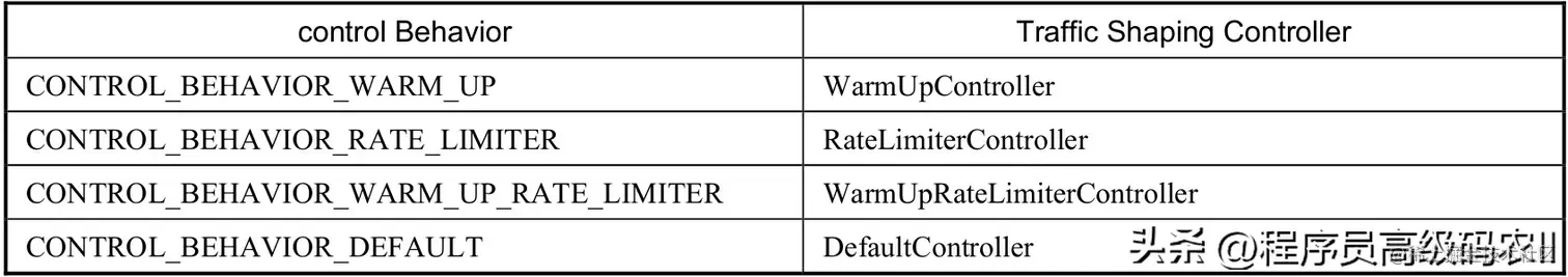 controlBehavior的取值与使用的TrafficShapingController的对应关系如表5.1所示。