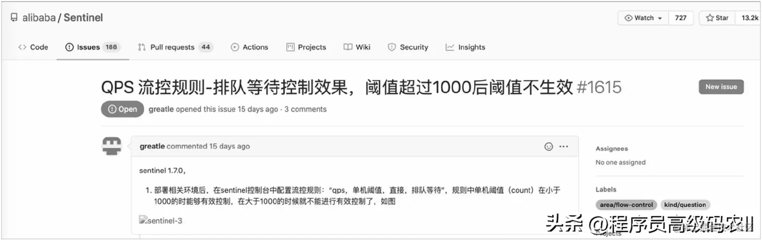 在分析完源码后,我们再来看GitHub上Sentinel的一个Issue,如图5.5所示。