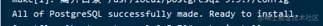首先输入 su - postgres切换用户,然后输入psql,如下图所示,则安装成功。