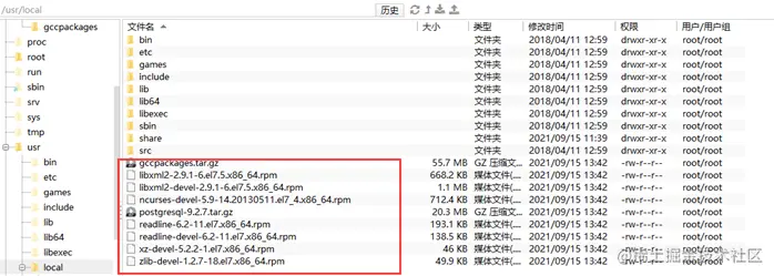 1、 把postgresql文件夹里面的上传到/usr/local下面,root用户