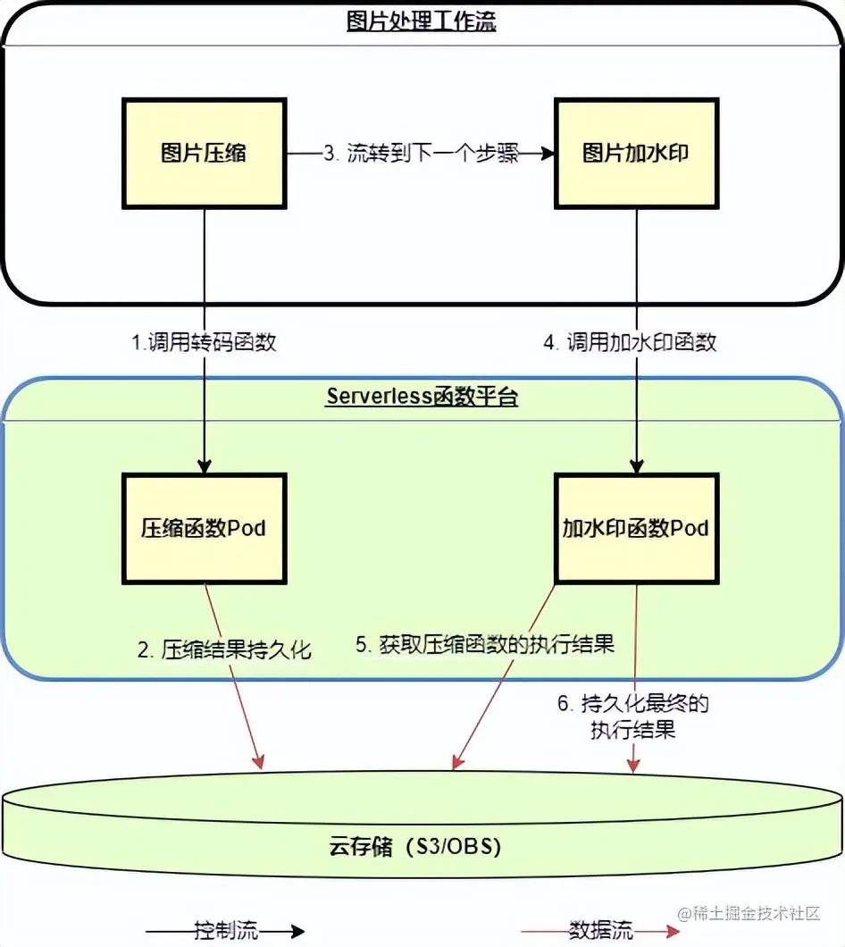 1、控制流:控制工作流的步骤间流转,以及步骤对应的 Serverless 函数的执行。确保步骤与步骤之间有序执行。