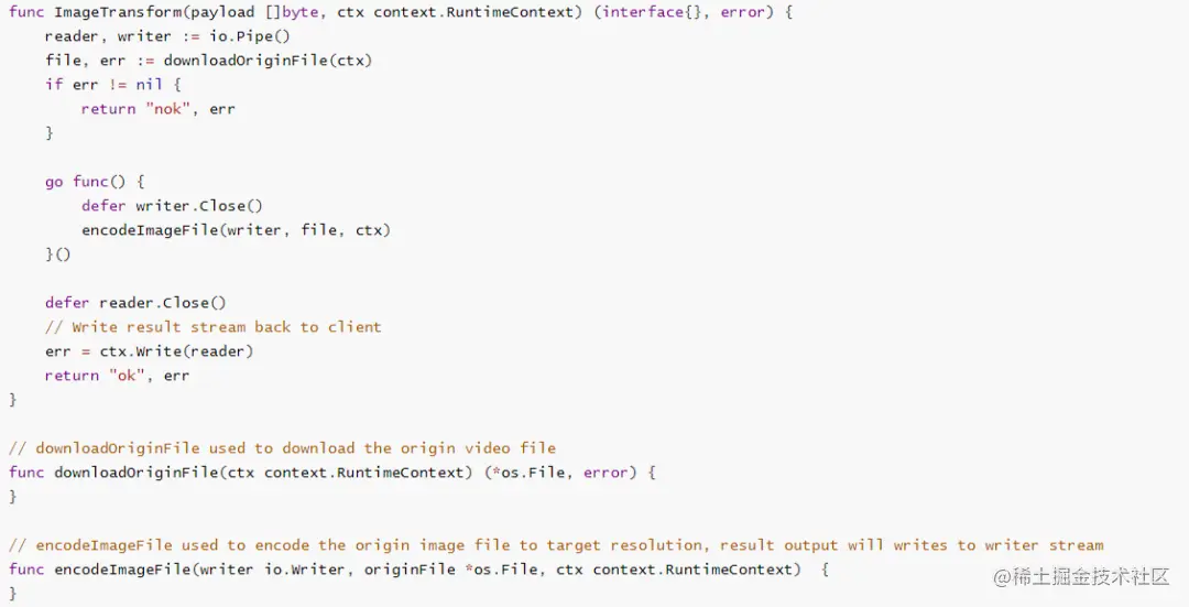 1、首先创建一个图片压缩的函数,其中代码在处理返回数据通过 ctx.Write() 函数将结果以流式数据的形式返回: