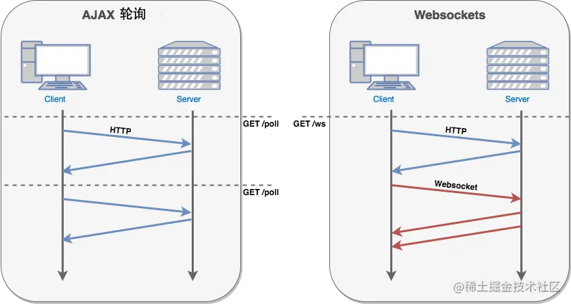 为了建立一个 WebSocket 连接,客户端浏览器首先要向服务器发起一个 HTTP 请求,这个请求和通常的 HTTP 请求不同,包含了一些附加头信息,其中附加头信息"Upgrade: WebSocket"表明这是一个申请协议升级的 HTTP 请求,服务器端解析这些附加的头信息然后产生应答信息返回给客户端,客户端和服务器端的 WebSocket 连接就建立起来了,双方就可以通过这个连接通道自由的传递信息,并且这个连接会持续存在直到客户端或者服务器端的某一方主动的关闭连接。
