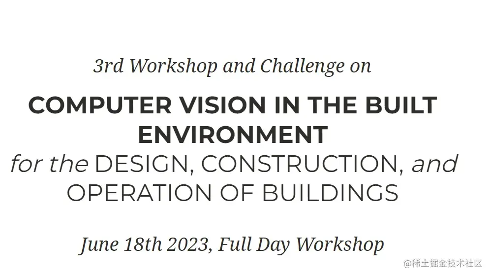 3rd Workshop and Challenge on Computer Vision in the Built Environment for the Design, Construction, and Operation of Buildings网址:cv4aec.github.io/主旨:探讨计算机视觉在建筑环境中的最新研究进展和应用,重点关注平面图重建和三维建筑模型重建的任务。是否征稿:是