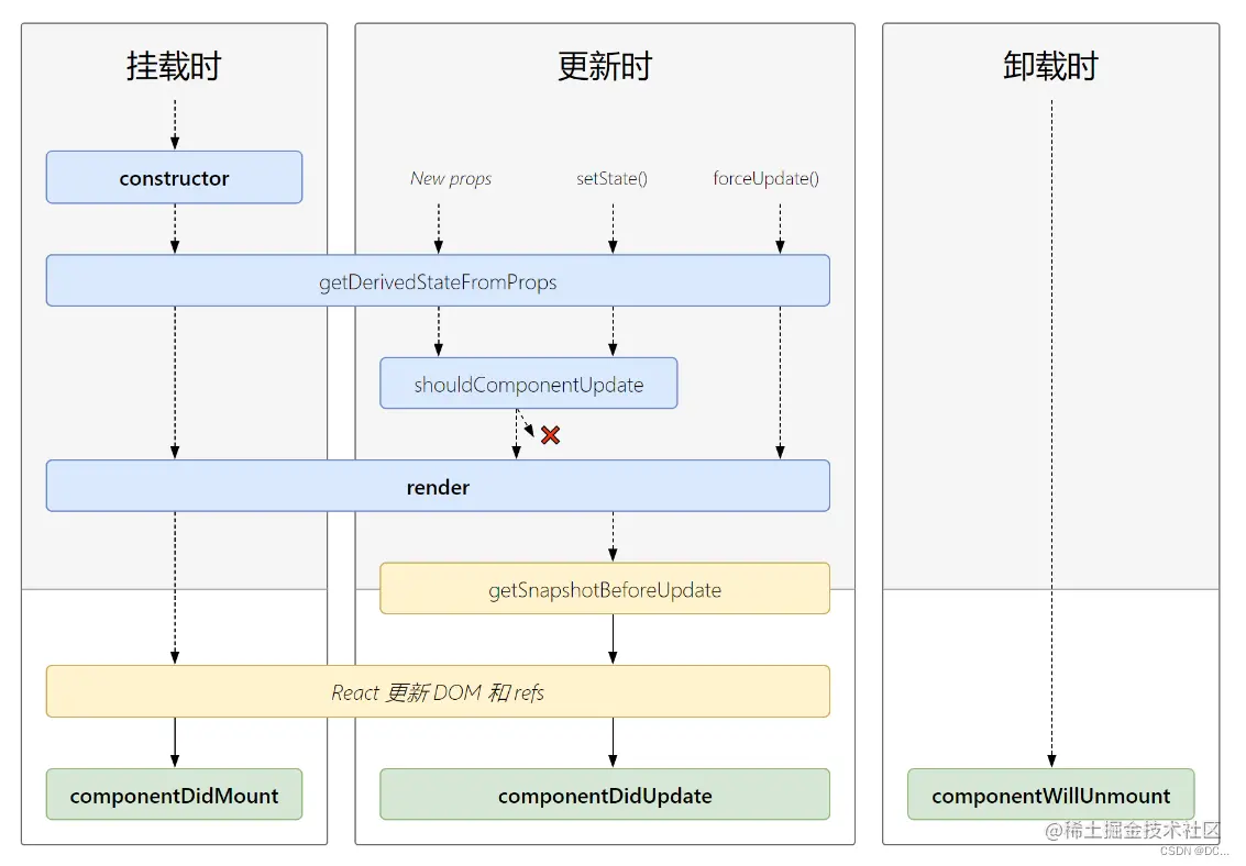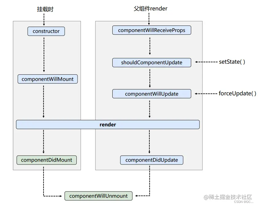 - 要在组件的 componentWillUnmount() 中取消订阅