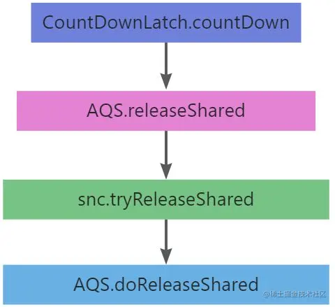 CountDown内部调用sync的releaseShared方法进行锁的释放。