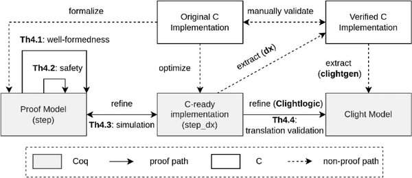 为了实现这个目标,我们的起点是Gallina中的rBPF语义模型。我们使用这个证明模型来证明所有的内存访问都是有效的,并且隔离到专用内存区域中,从而确保隔离。从这个证明模型中,我们然后导出一个综合模型,从中我们提取了一个在Clight中可执行的版本,最终证明执行相同的状态转换。