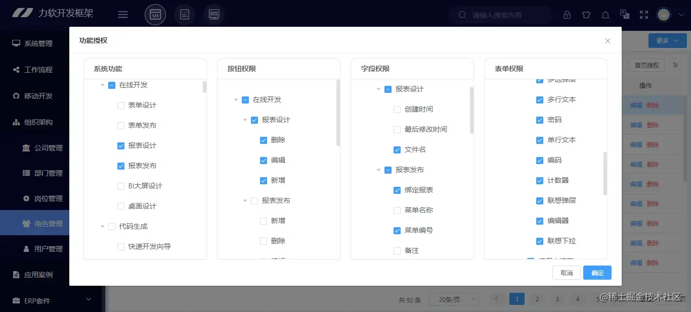 对于使用者,LeaRun敏捷开发框架还配置了相应的细粒度的权限管控,支持报表的数据权限、功能权限管控,可按用户或角色进行授权管理,针对用户的不同级别,分别满足业务人员、管理人员、高级管理人员以及决策者对信息的不同要求,实现企业级报表权限的管控需求。