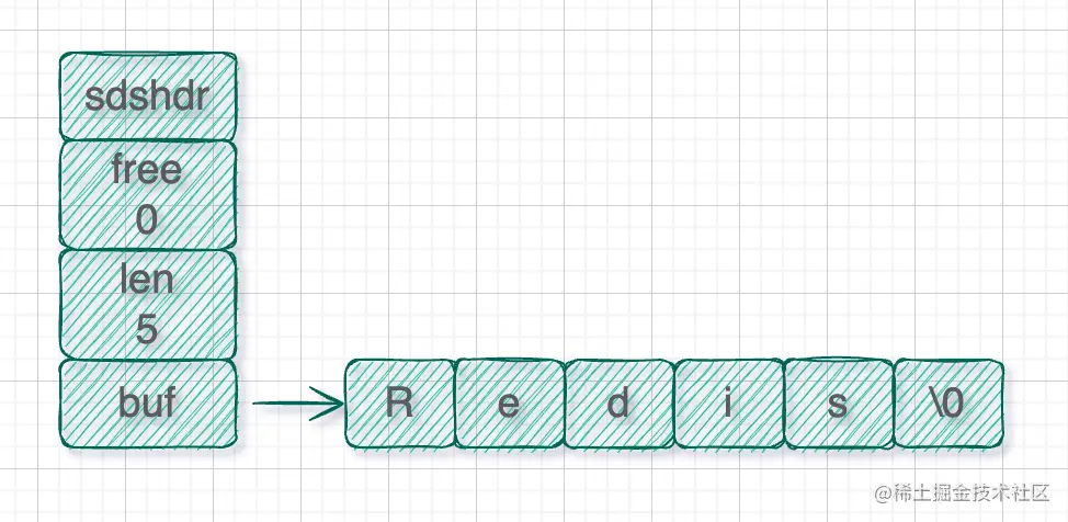 由于C语言字符串有这么多缺点,而Redis又追求极致性能,所以只能自己实现一套,看一下Redis字符串底层是怎么实现的?