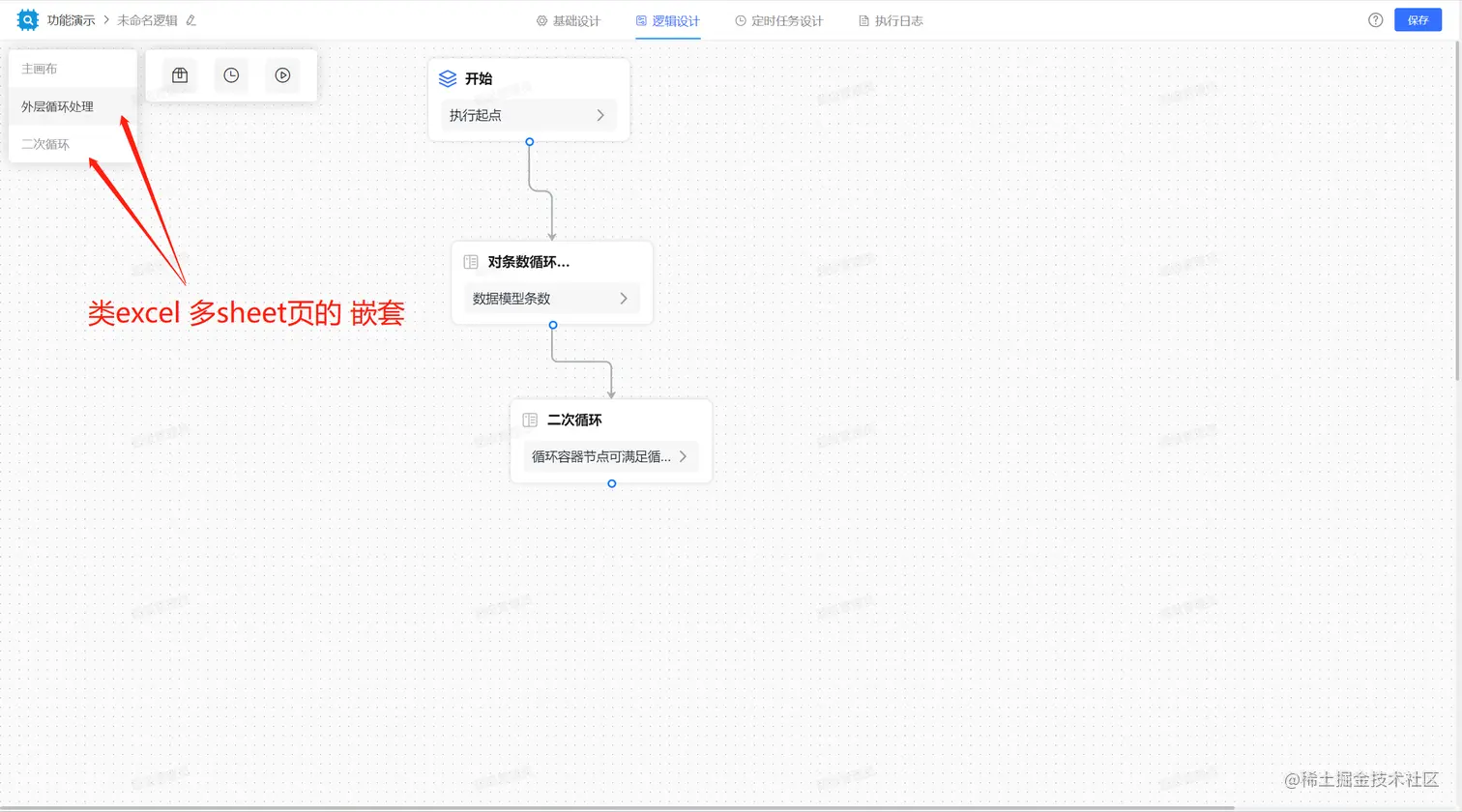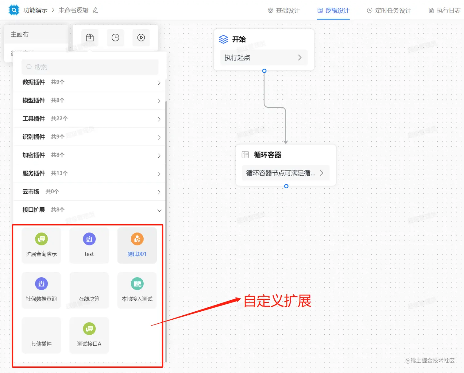 逻辑配置我们也称之为服务编排,把系统中各种服务有机的通过拖拽的方式 ,将各种组件服务拼接起来,并且达到快速调试,快速部署,快速实施的目标。所以逻辑引擎核心的功能: