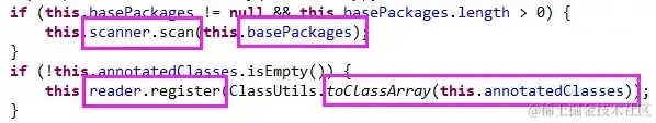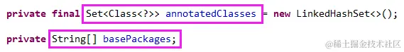 先定义两个成员变量,存储要注册的类和要扫描的包,如下图: