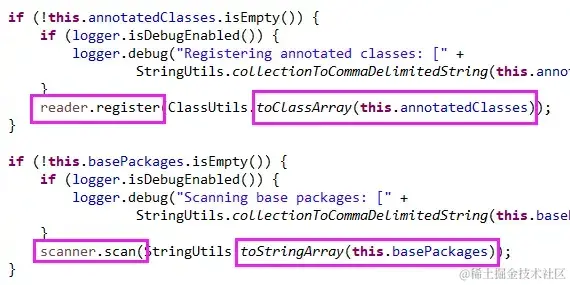 最后就是具体的来执行注册类和扫描包,如下图: