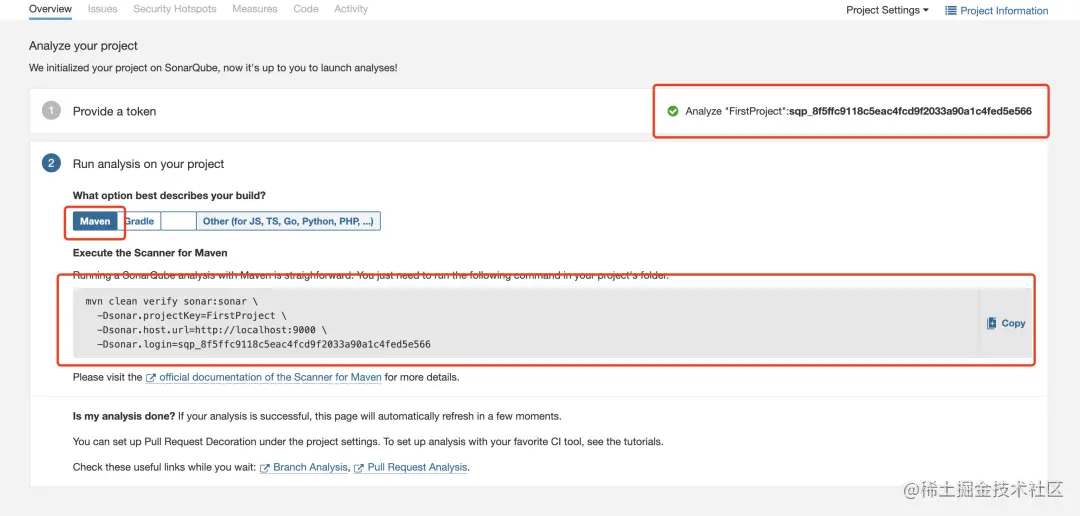 也可以在 SonarQube web 中单独配置一个项目,创建好项目后,直接将 mvn 命令在待分析的项目中执行,即可生成对应项目的分析报告,然后在 SonarQube web 中查看。