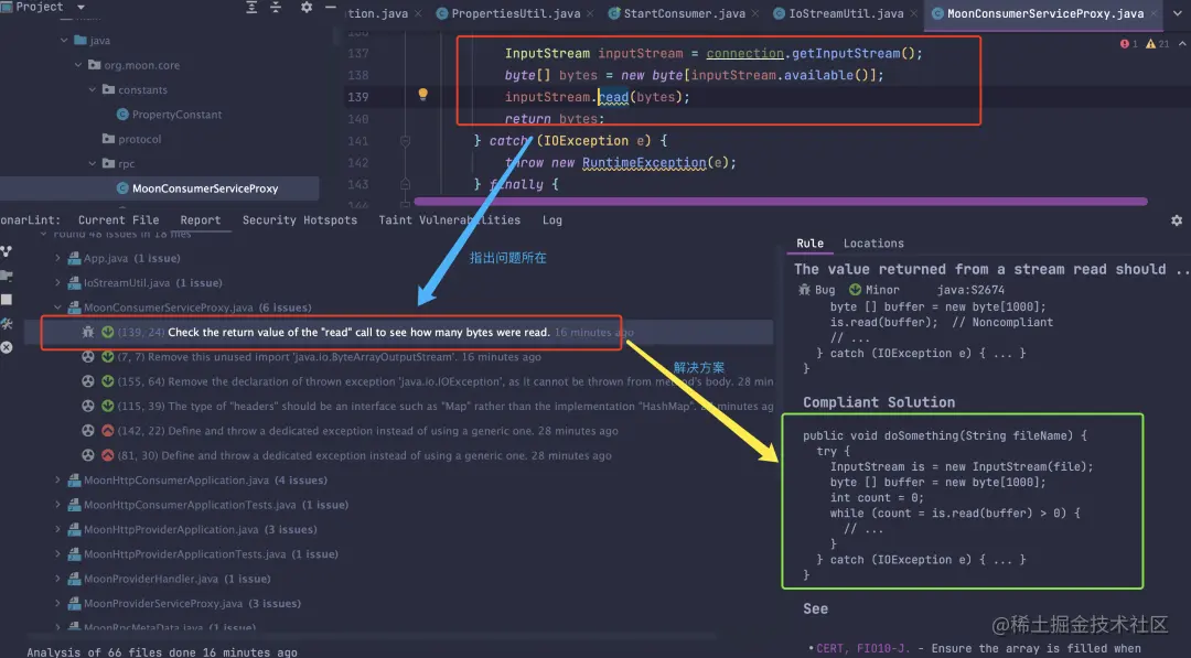 SonarLint 使用静态代码分析技术来检测代码中的常见错误和漏洞。例如,它可以检测空指针引用、类型转换错误、重复代码和逻辑错误等。这些都是常见的问题,但是有时候很难发现。使用 SonarLint 插件,可以在编写代码的同时发现这些问题,并及时纠正它们,这有助于避免这些问题影响应用程序的稳定性。