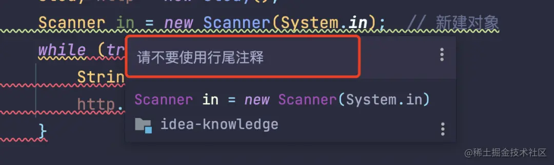再比如一些注释上的提示,不建议使用行尾注释。